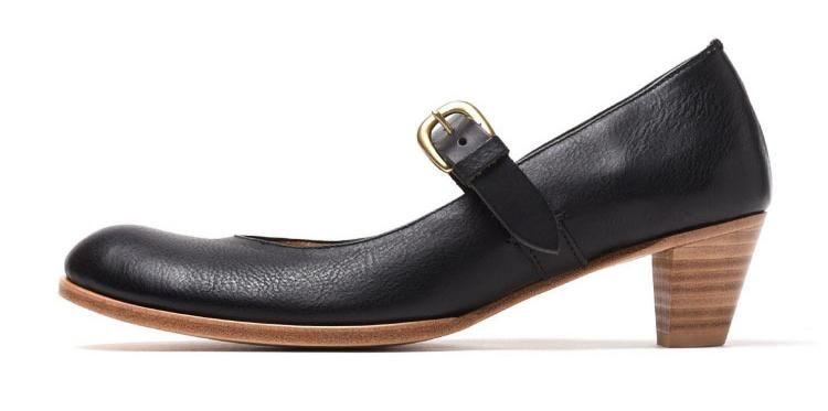 ショセの人気作品ワンストラップPC570。使い勝手の良いシボ感のある黒牛革を使った作品です。革ストラップは、アッパー色に合わせたスムース革で、アンティークゴールドバックルとの組み合わせが素敵です。主張し過ぎることがなく、適度に落ち着きを持たせたさじ加減の素晴らしさは、デザイナーと靴職人の巧みな連係プレーの賜物です。