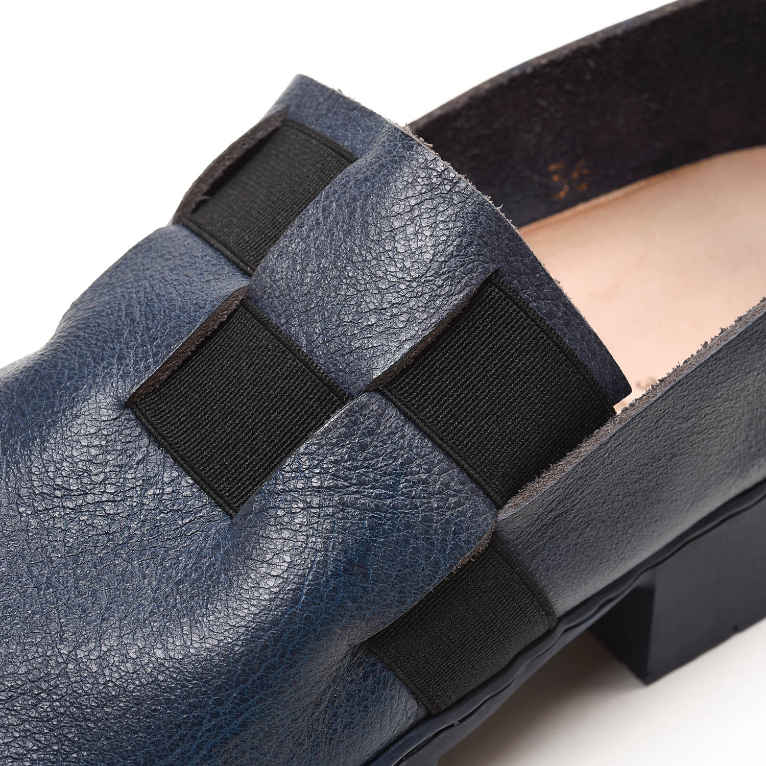 格子柄の黒部分はゴムで、履き口をしっかり押えてくれます。甲以外の部分は、ゆったりとしています。踵の抑えもルーズです。少し小さめに選んで、革が馴染むのを待つ履き方がお薦めです。