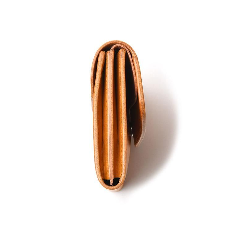 内装に装備されているカードケースは6つ。良く出来たもので、1箇所に複数枚挿ししても大丈夫です。ドレス向けのお財布では御法度な重ね挿しも、カジュアル財布なら許されます。かなり大量のカードも装着できるのは嬉しいです。ガンガン使って革財布の味を楽しんで下さい!