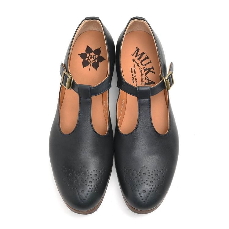 ムカヴァ MU997 Tストラップ (ネイビー) (レディース) 革靴 MUKAVA