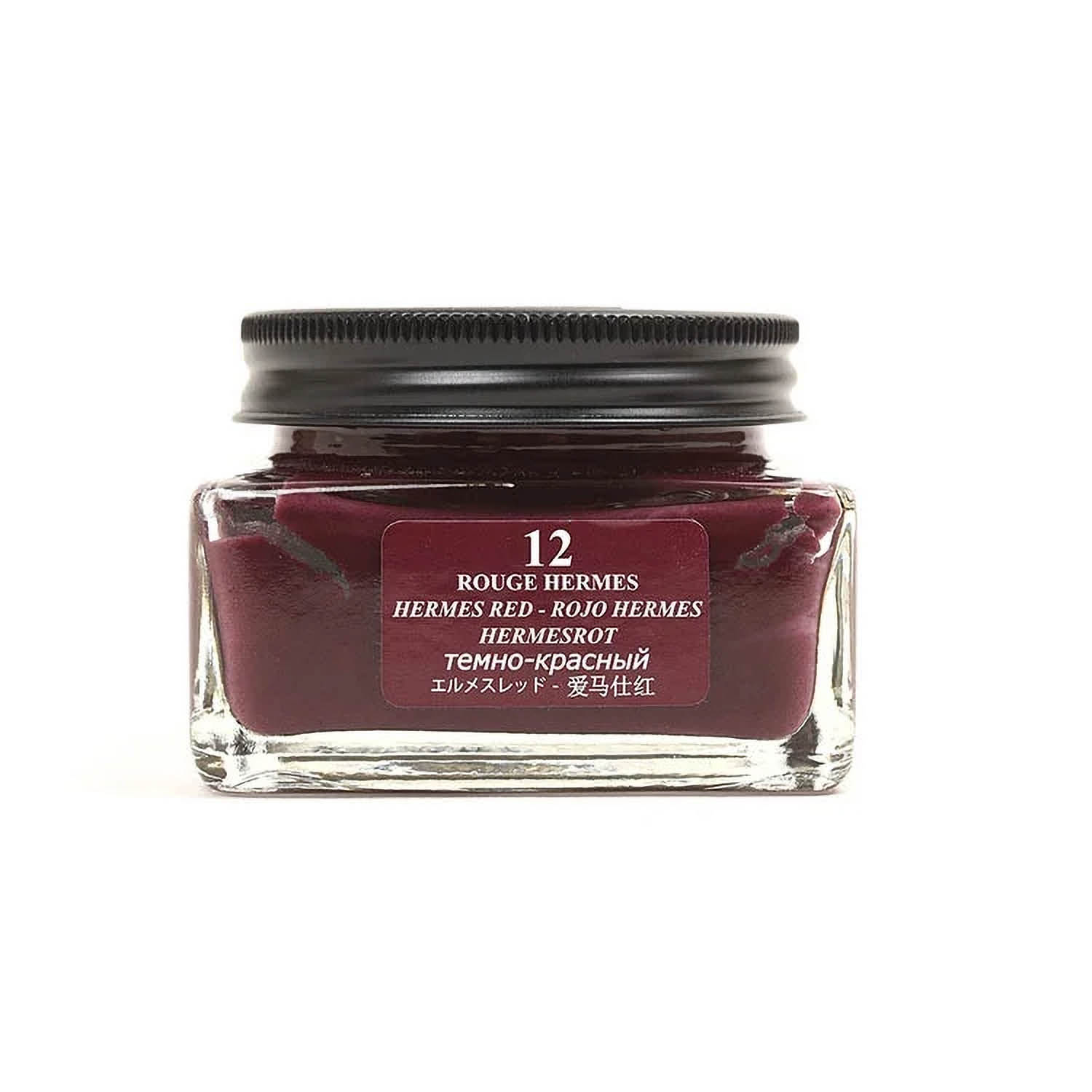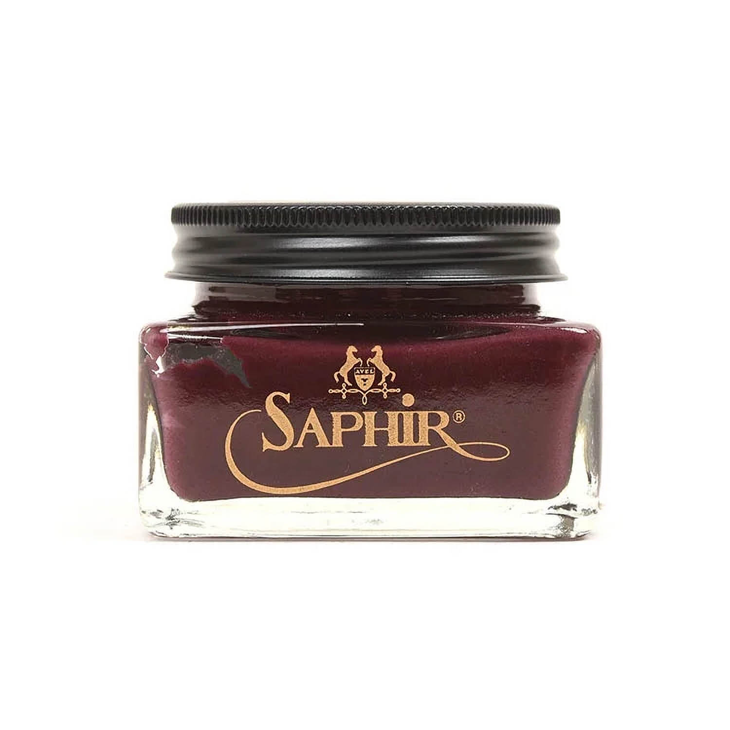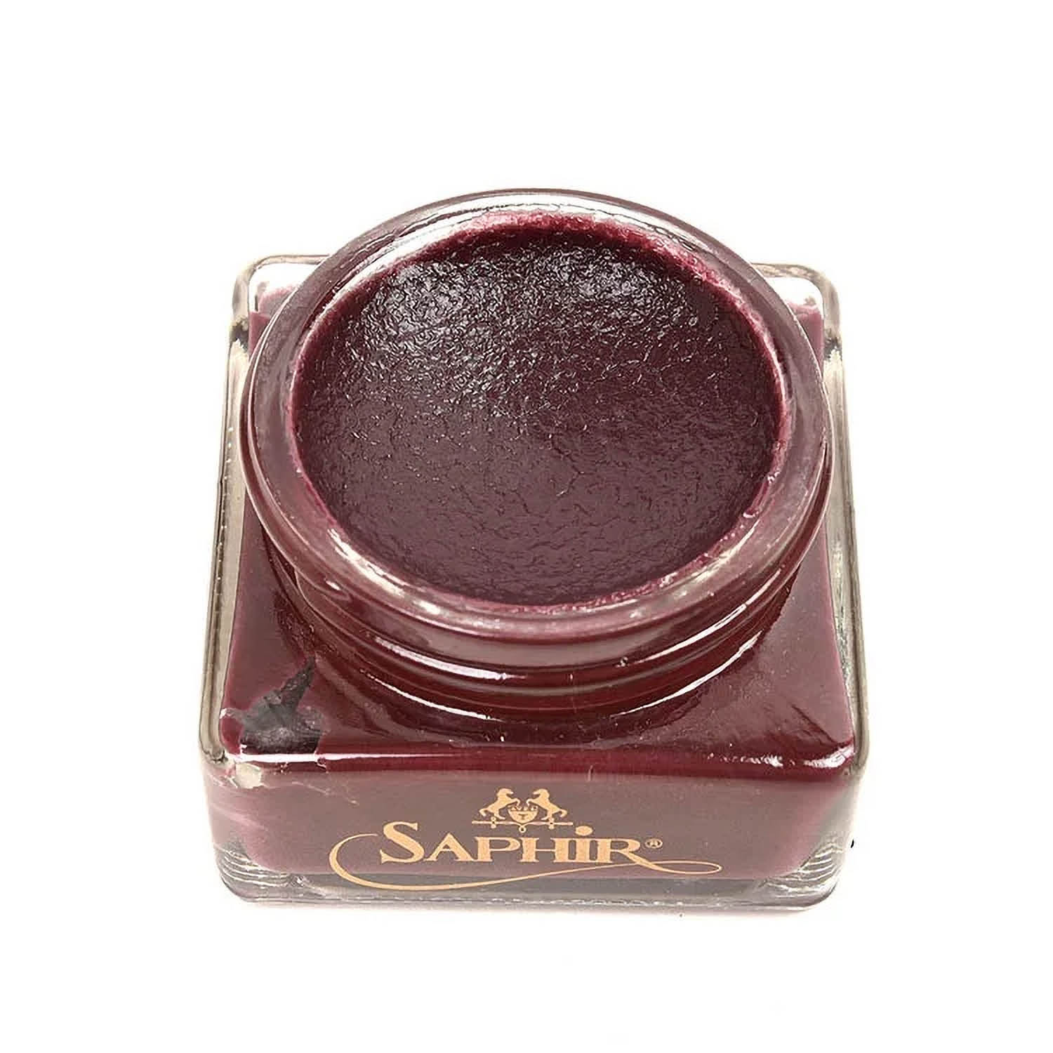 シアナッツから手作業で生成されたシアバターを配合したサフィールノワールブランドのカラークリーム「クレム1925」です。シアバターは、常温では固形ですが、体温以上でオイルへと変化することからバターと呼ばれています。高級コスメなどにも採用されるシアバターを使い靴用に特化したクリームを開発しました。シアバターのほかに高級蜜ロウ(ビーズワックス)やカルナバワックスで構成された最高級靴クリームです。皮革に美しい光沢、補色、栄養、保革・保湿効果を与えます。擦り傷も目立たなくします。
