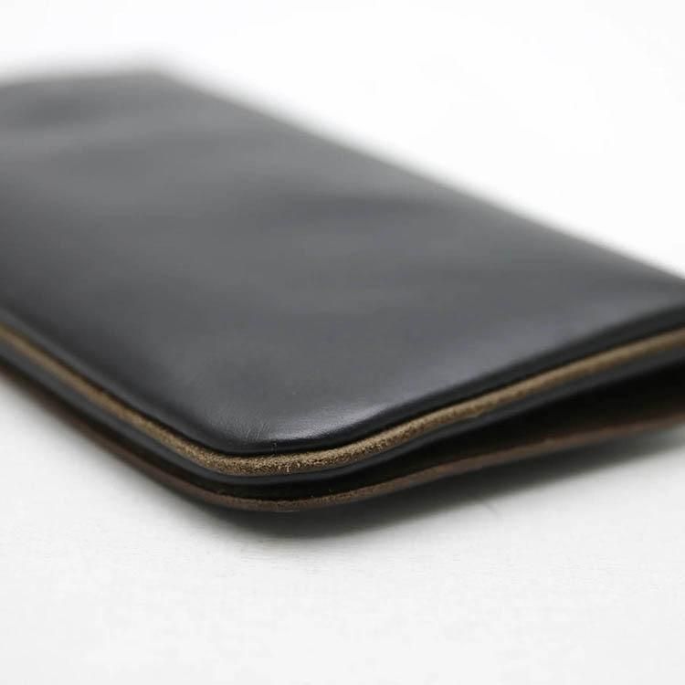 無骨さを兼ね備えながらも高級感を損なわない、他にはないスペシャルなトラッカーズウォレットです。このウォレットはモーターだけで作られており、MOTORの定番レザーの一つであるクロムエクセルを使用しています。無骨な雰囲気を持ちながらも野暮ったくなり過ぎないようなシンプルなデザインが特徴です。使用頻度の高い角の部分は内縫い仕様のため、ステッチが擦り切れる心配もなく、永く使いこんでエイジングを楽しむことができます。
