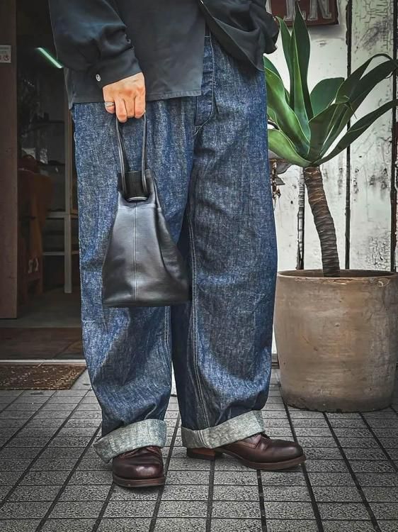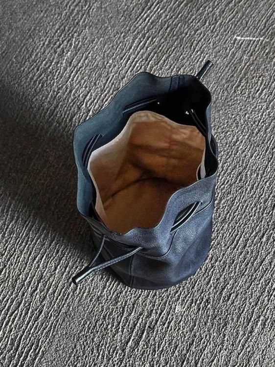 クラフトマンのワークギアをテーマに製作したシリーズ。オールレザーのバッグとは思えない程の超軽量の巾着ポーチです。丈夫で軽量なフルベジタブルタンニン鞣しのゴートレザーは、使い込んでいくと艶と皺が出てきて特有の経年変化を楽しめます。