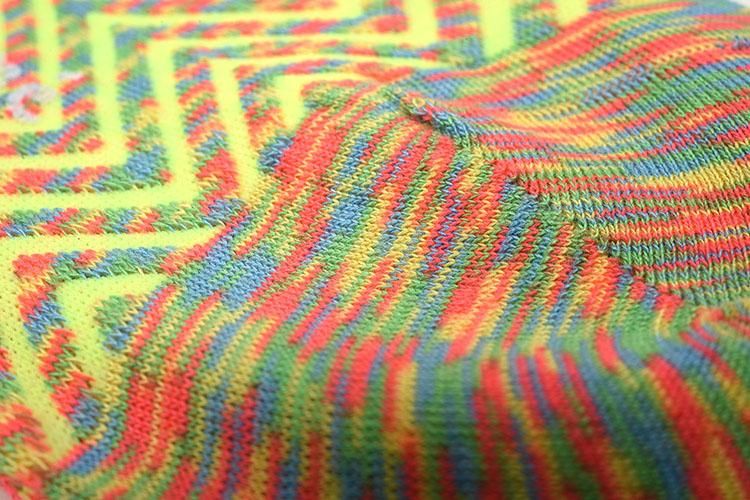 特徴イエローを基調にコーラルやグリーンを散りばめたスプリンクル柄、つま先・履き口のメランジ調配色、軽やかな発色と快適なフィット