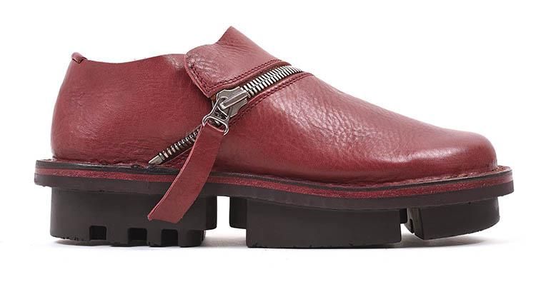 デザインアッパー中央を斜めに走るメタルジッパーが印象的なスリッポン。ボリュームあるアウトソールと彫刻的フォルム。