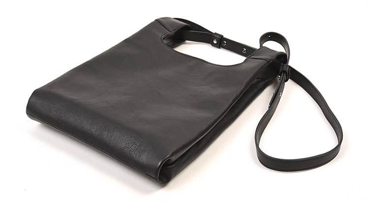 特徴美しい曲線を描く上部デザインと柔らかいレザーの質感が魅力。軽量で肩馴染みが良く、A5サイズのノートや長財布も収納可能。オン・オフ問わず活躍するミニマルなシルエット。