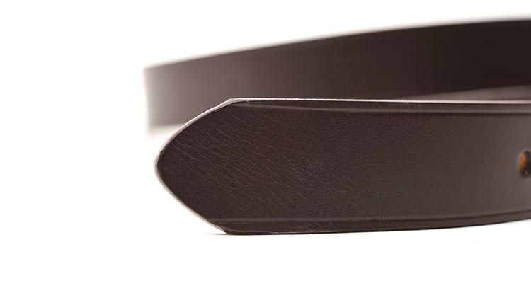 バックルは真鍮製のオーバルスクエア型。角に丸みを持たせた柔らかなフォルムが、力強さの中に上品な印象を与えます。装飾を一切排したデザインは、ビジネスにもドレスにも馴染む万能の一本。ステッチを省いた構造美が、素材そのものの質感を引き立て、ブライドル特有のロウ浮きが深みを演出します。時を経るごとに艶を増し、自分だけの一本へと育っていく、英国クラフツマンシップの結晶です。