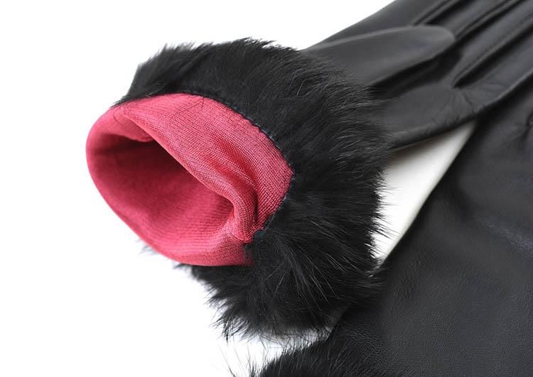 DENTS 17-2030ブラック/ヘアシープ × ラビットファーWomenSilk LiningMade in England