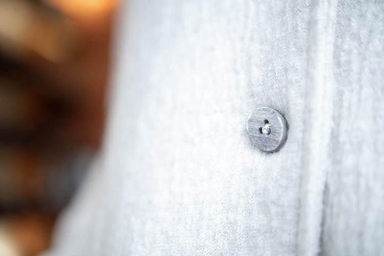 繊細な凹凸を帯びたウール素材は、軽さと柔らかさを絶妙に兼ね備え、羽織った瞬間から身体に寄り添う心地よさを実感できます。ふわりと空気を含むような膨らみのあるテクスチャーは、視覚的にも触覚的にも温かみを持ち、冬の装いに深みと余裕をもたらします。グレートーンのボタンディテールが、ホワイトの清潔感と相まって静かなアクセントとなり、コーディネートに上品な陰影を添えます。