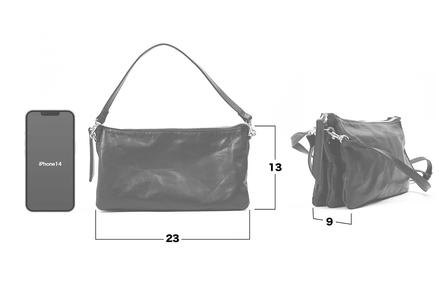 サイズ目安長財布サイズ相当(コンパクト設計ながら鍵・スマートフォン・小銭等収納可能)