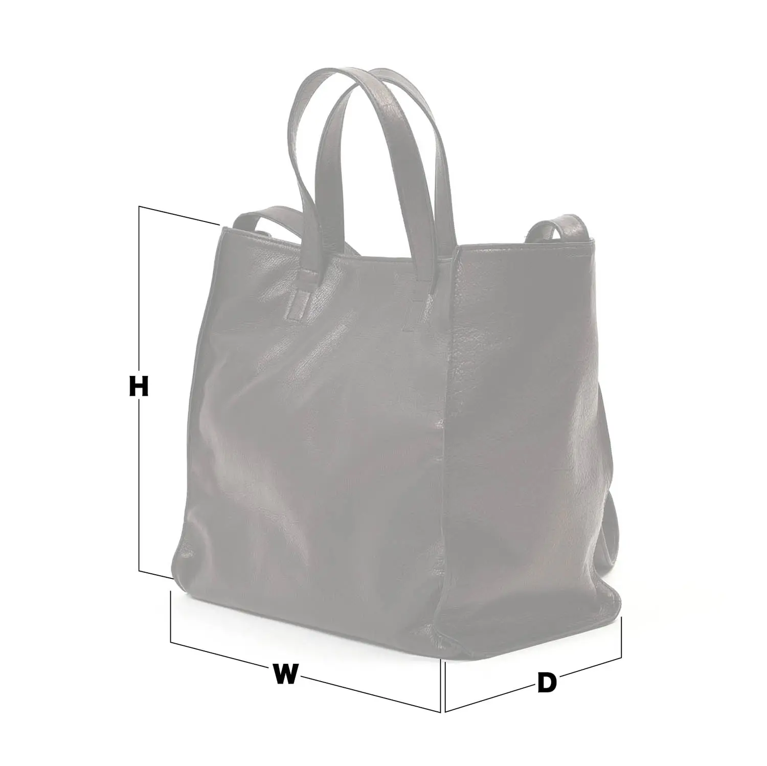 LE-2514は、無駄を削ぎ落とした横長フォルムが印象的な日本製レザートート。自然なシボを湛えたブラックレザーは、柔らかさの中に芯を感じさせる質感で、光の当たり方によって奥行きのある表情を見せます。装飾を極力排したデザインは、持つ人の装いを選ばず、ビジネスにも日常にも静かに溶け込む佇まいです。