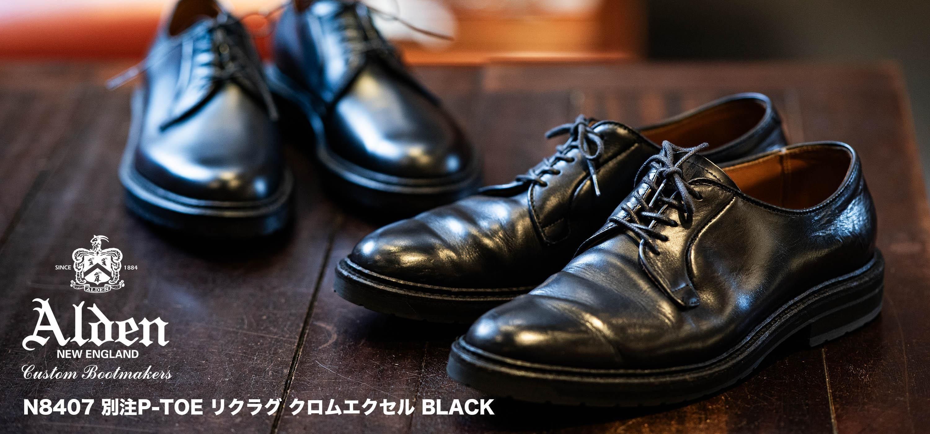 • オールデン N8407 別注P-TOE リクラグ クロムエクセル BLACK (メンズ) プレーントゥシューズ 革靴 ALDEN